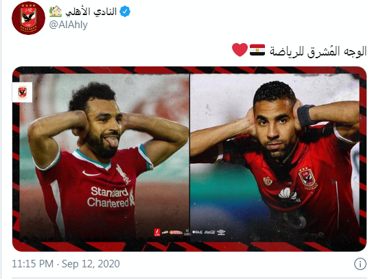 ونشرت الصفحة الرسمية للقلعة الحمراء عبر تويتر، صورة للفرعون المصري محمد صلاح وهو يقلد الحركة الشهيرة، وبجواره مؤمن زكريا وهو يحتفل بأحدى الأهداف، وكتبت قائلة "الوجه المشرق للرياضة المصرية"، ليسارع جمهور الأهلي وليفربول لتوجيه الشكر لصلاح بعد مساندته لاعب المنتخب الوطني والقلعة الحمراء.