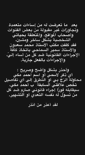 وأضافت: "أي ذكر لاسمي أو اسم أحمد مكي بطريقة مسيئة، أو التطرق إلى تفاصيل حياتنا الشخصية، سيواجهه إجراءات قانونية فورية".