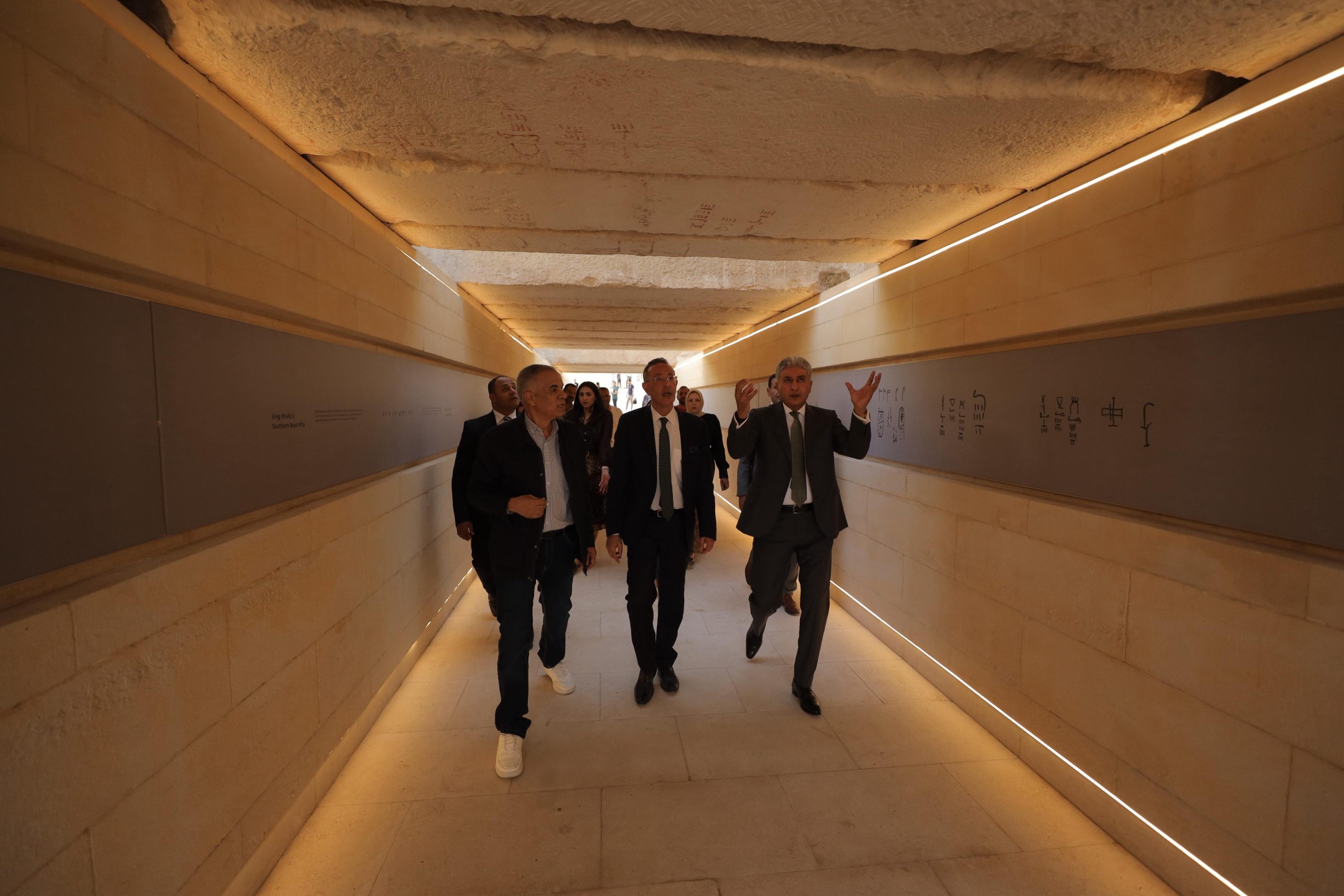 وقد رافق الوزير في جولاته كل من الدكتور أحمد غنيم الرئيس التنفيذي لهيئة المتحف المصري الكبير، والأستاذة رنا جوهر مستشار الوزير للتواصل والعلاقات الخارجية والمشرف العام على العلاقات الدولية والاتفاقيات، والدكتور عيسى زيدان مدير عام الترميم ونقل الآثار بالمتحف.